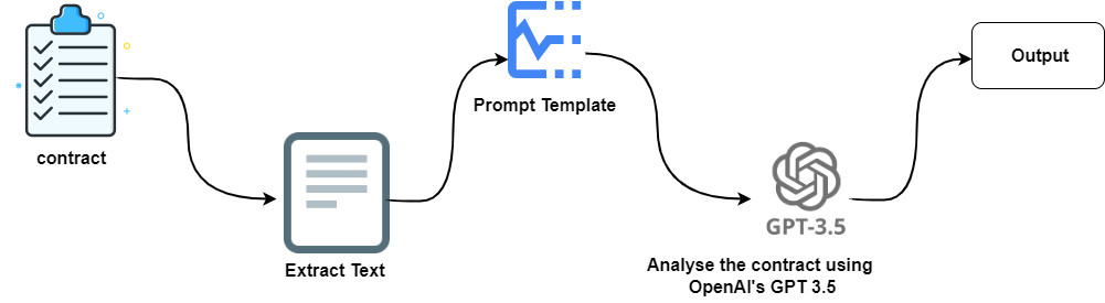 ֍ The system can extract critical dates and transform PDF contracts into JSON format for enhanced machine readability and integration. Additionally, it supports the generation of new contracts and comparison of existing contracts to identify discrepancies or missing features. Each of these tasks is handled through a combination of natural language processing (NLP) and machine learning models, with the central engine being powered by GPT-3.5, known for its advanced text comprehension and generation capabilities.